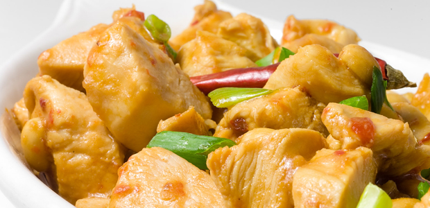 Kung Pao Chicken METHOD: Stir broth into cornstarch in small bowl. Add next 4 ingredients. Stir. Set aside. Beat next 3 ingredients with fork in medium bowl. Add chicken. Stir until coated. Deep-fry, in 2 batches, in hot (375°F, 190°C) cooking oil for 3 to 4 minutes, stirring to separate…